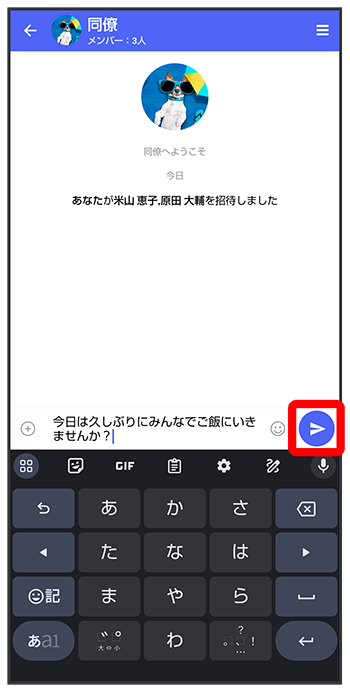 グループメッセージ内で、宛先を指定してメッセージを送信することができます。