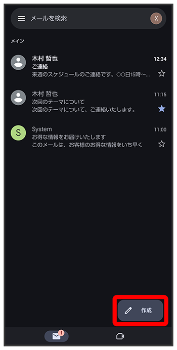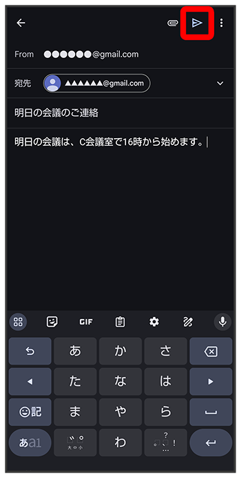 メール作成画面で- を選択すると、送信する日時を詳細に設定できます。