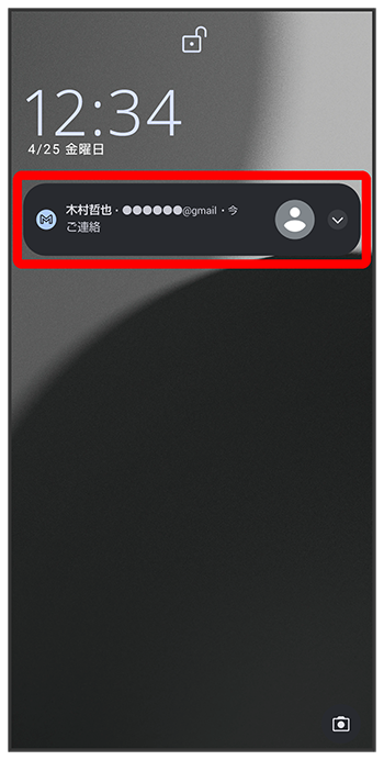 新着メールを受信すると、ロック画面に新着メッセージ通知が表示されます。