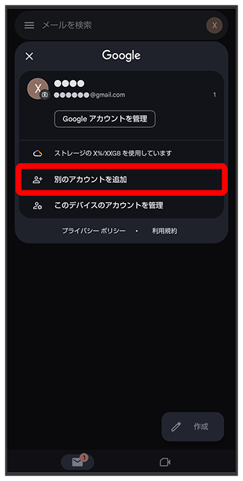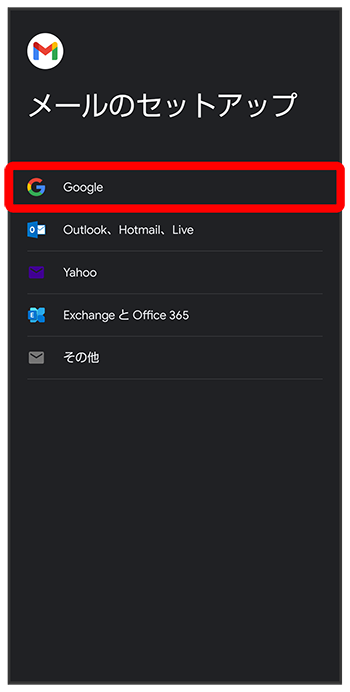 ここでは、Google アカウントを追加する方法を例に説明します。