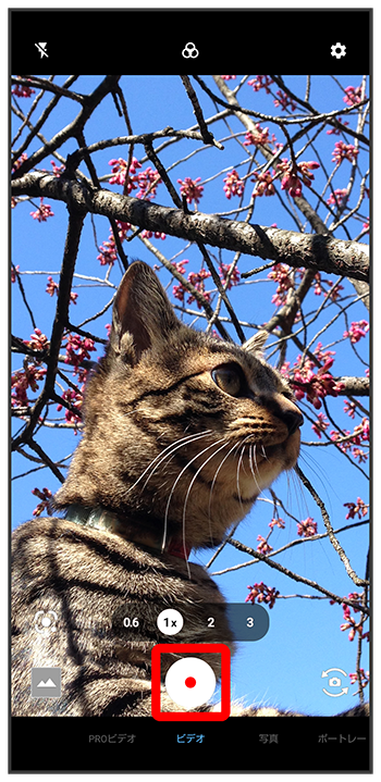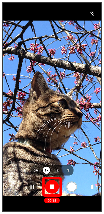 をタップすると写真が撮れます。また、が有効のときに動画を撮ると、笑顔、犬や猫の顔、よい構図などをAIが判断して、自動で写真を撮ります。 - 動画撮影中に