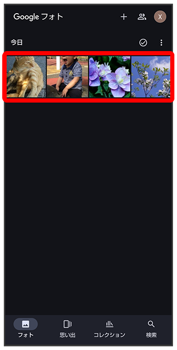 フォト画面が表示されます。