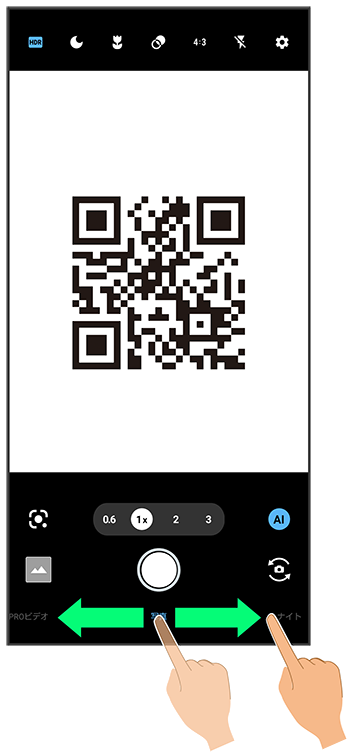 - QRコード(バーコード)が小さくて検出できないときは、ピンチアウト、または音量Upキーを押して拡大してください。
