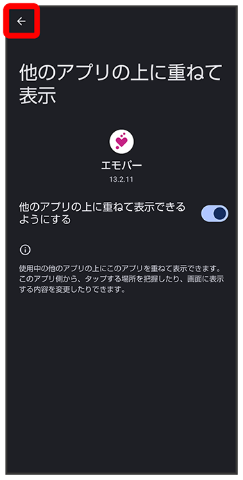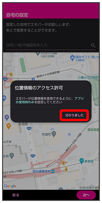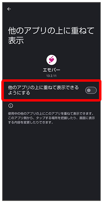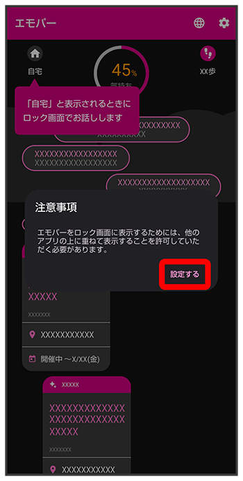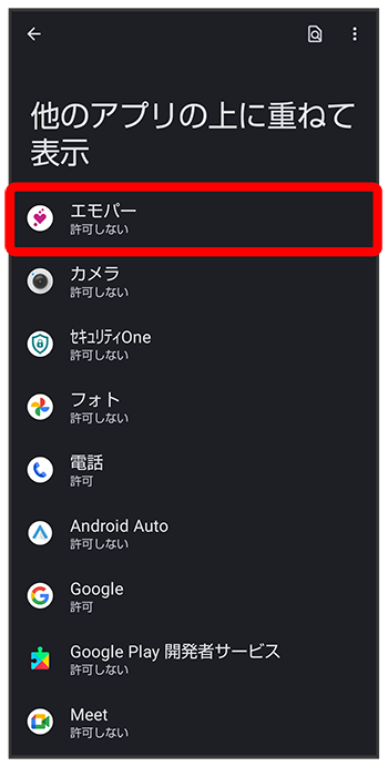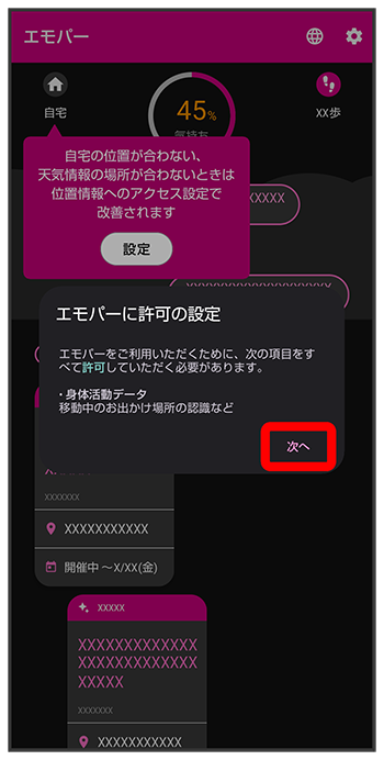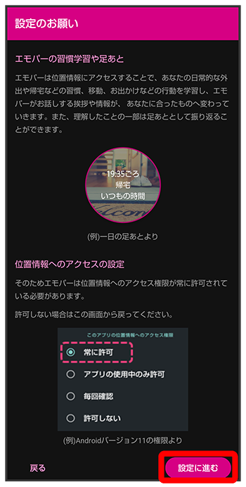 エモパーに許可の設定画面が表示されたら