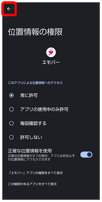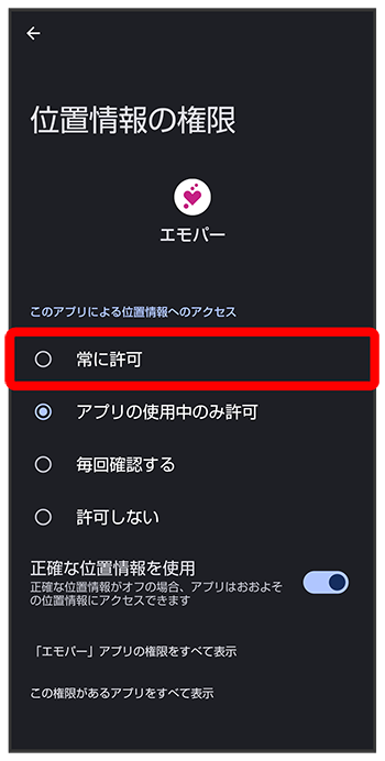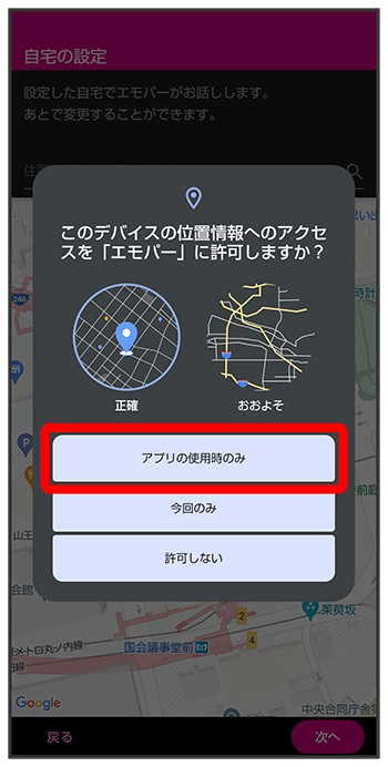 - 正確な位置情報の利用を許可するときはを、おおよその位置情報の利用を許可するときはを選択してください。