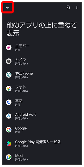 - 通知機能の場合は、アプリ名をタップしたあと、をタップするたびに、許可(