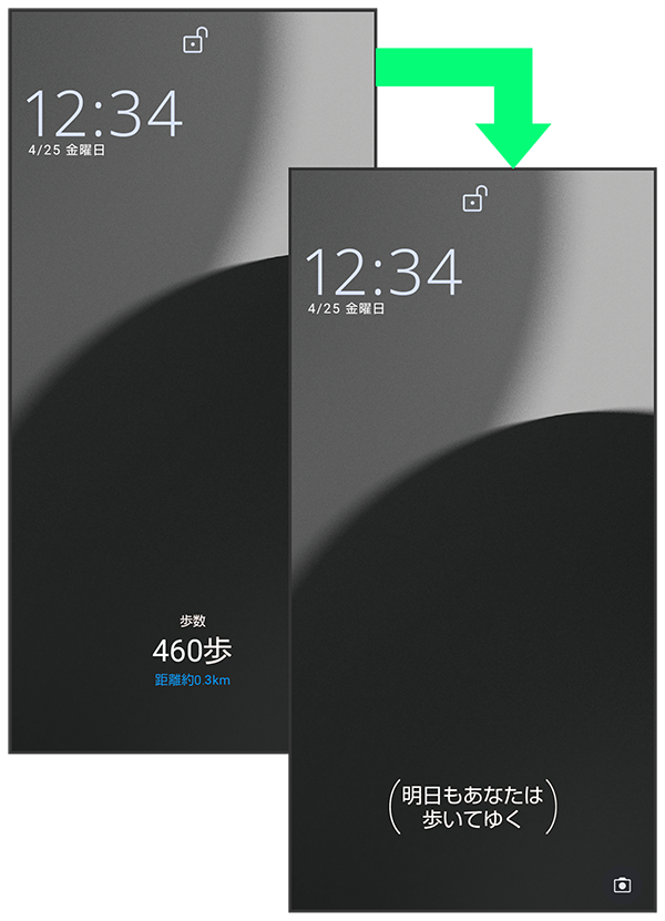 ロック画面では、エモパーがいろいろな情報をお知らせします。