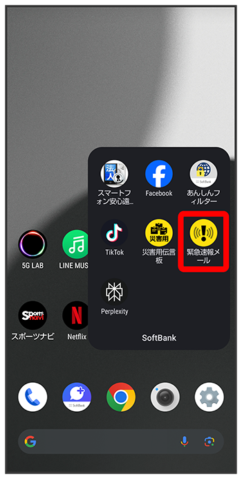 ホーム画面で緊急速報メールを利用するかどうかを設定する