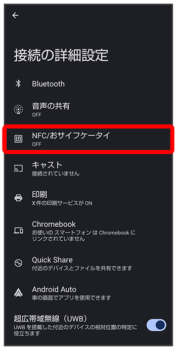 画面消灯(画面ロック)中はNFC/おサイフケータイ®の機能を無効にする