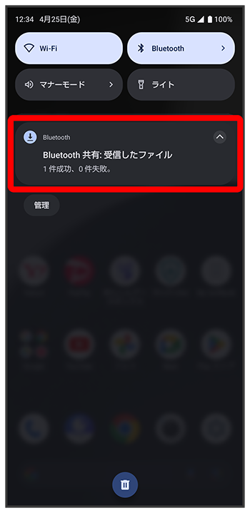 が表示されます。ステータスバーを下にフリックしてBluetooth®共有通知をタップしてください。