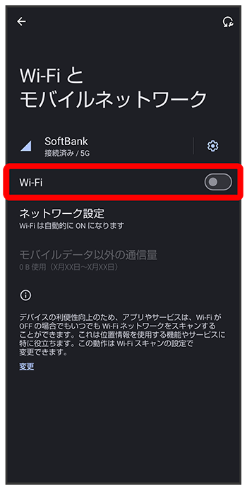 Wi-Fiとモバイルネットワーク画面で画面に従って操作Wi-Fiを使用したデータ使用量を確認する