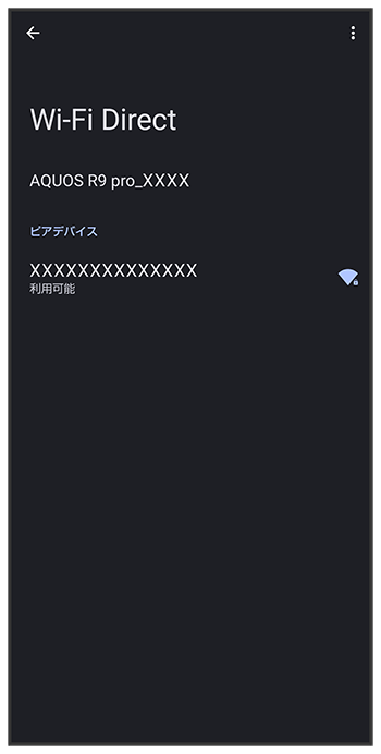 「ピアデバイス」欄に、近くにあるWi-Fi Direct規格対応機器が表示されます。