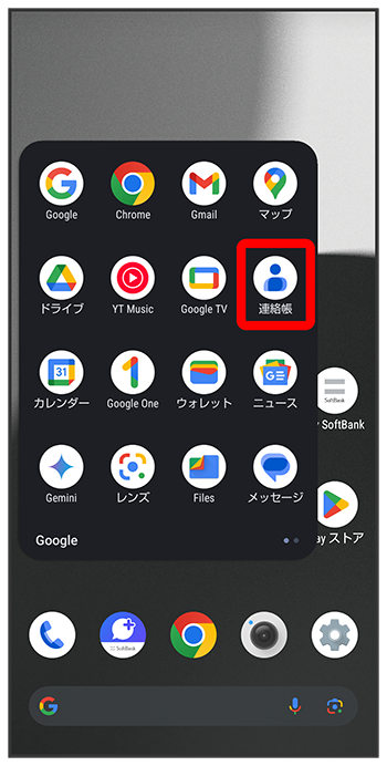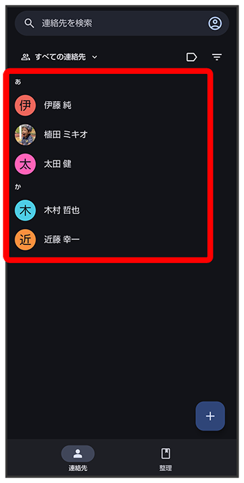 連絡帳画面で連絡先をロングタッチ送信したい連絡先をタップ(