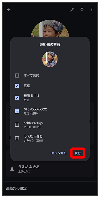 送信する連絡先をタップ