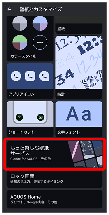 ロック画面におすすめの壁紙を設定する(Glance for AQUOS)