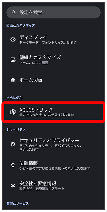 AQUOSトリック画面が表示されます。