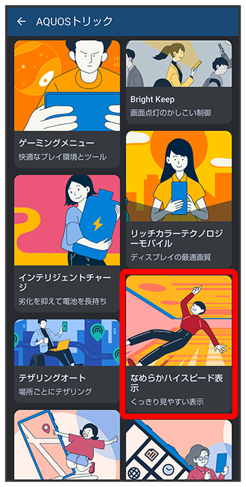 なめらかハイスピード表示画面が表示されます。
