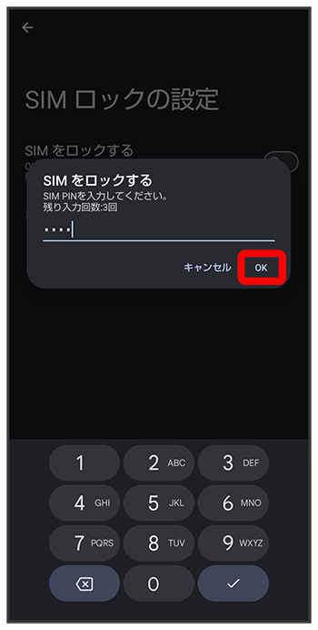 PINコードを操作するときや、SIMカードロック設定時に電源を入れたときは、PINコードの入力が必要になります。