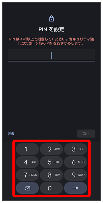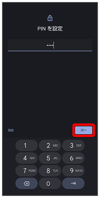 - をタップすると、入力したロックNo.(PIN)を消去できます。