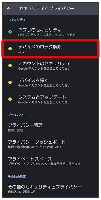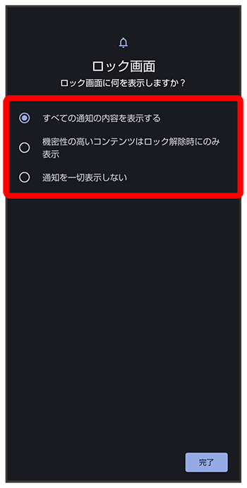 - 変更前の画面ロック解除方法がまたは以外のときは、設定が完了します。