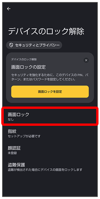 - 変更前の画面ロック解除方法がまたは以外のときは、ロックを解除する操作が必要です。