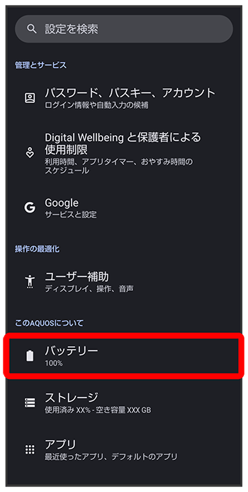 - 本機の電池残量が「バッテリー残量制限」で設定した残量以下になるか、充電を開始してから「シェアタイマー」で設定した時間が経過すると、チャージシェアが自動的に停止します。