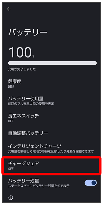 ・本機をWi-Fiのみに接続して(モバイルネットワークへの接続なし)ご使用の場合 - 本機の充電中は、チャージシェアを利用することができません。