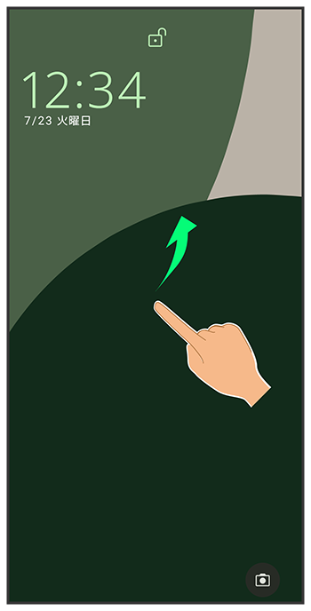 が表示されている場合に画面を上にフリックしたときは、このあとパターン/ロックNo.(PIN)/パスワードを入力してロックを解除する操作が必要です。