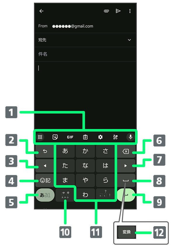 - 表示するアイテムを変更することもできます。詳しくは、「ツールバーについて(Gboard)」を参照してください。