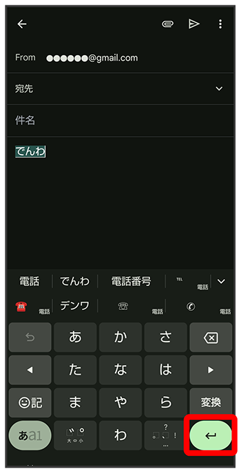をタップしたあと、次の文字を入力します。入力した文字の背景色が変わったあとは、そのまま次の文字が入力できます。 - キーをくり返しタップせず、キーをロングタッチしたときに表示されるキー入力ガイドを利用して文字を入力することもできます。詳しくは、「フリック入力について」を参照してください。