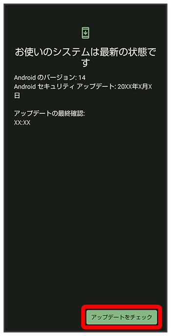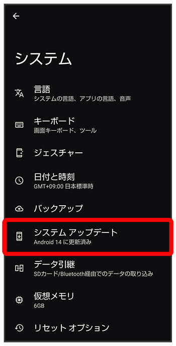システムアップデートが必要なときは、通知が表示されます。通知をタップし、画面に従って操作してください。通知が表示されない場合などは、次の手順で必要かどうかを確認してアップデートできます。