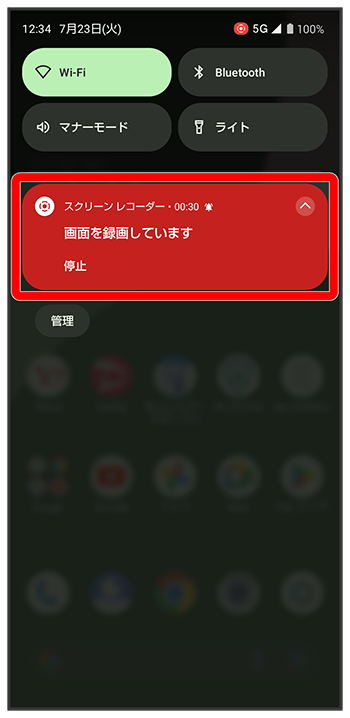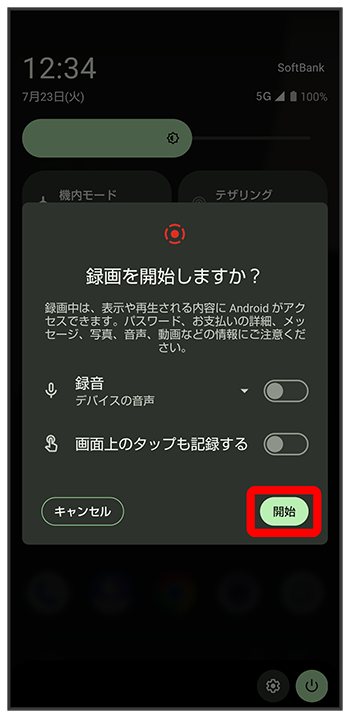 スクリーンレコード開始画面で「画面上のタップも記録する」の