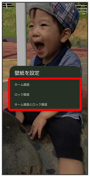 - をタップすると、ホーム画面にのみ選択した壁紙を設定できます。