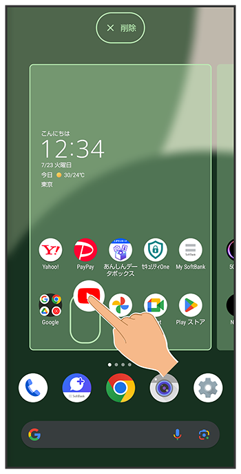 ホーム画面でフォルダをロングタッチ「削除」までドラッグ- お気に入りトレイでも同様に操作できます。
