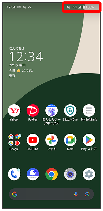 - お使いの端末画面上(画面上部)に待ち受け時は「5G」と表示されている場合でも、通信を行う際は表示が「4G」に切り替わり、4G通信が使用される場合があります。