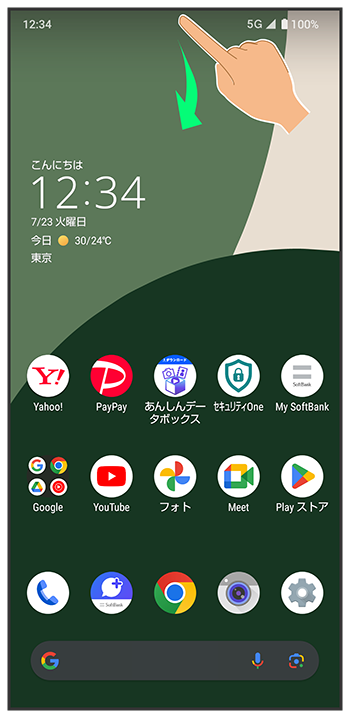 - 通知パネルが開いてない状態で、ステータスバーを2本の指で下にフリックしても、クイック設定パネルが表示されます。