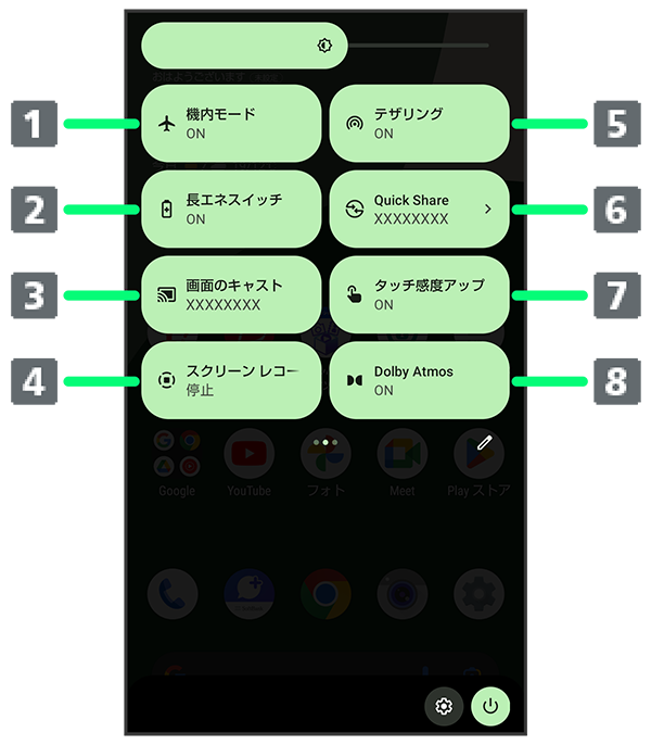 - 機能ボタンの表示領域を左右にフリックすると、シートを切り替えることができます。