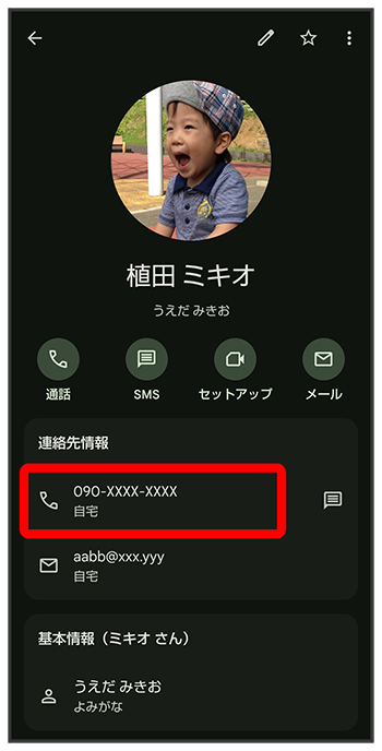 連絡先詳細画面が表示されます。