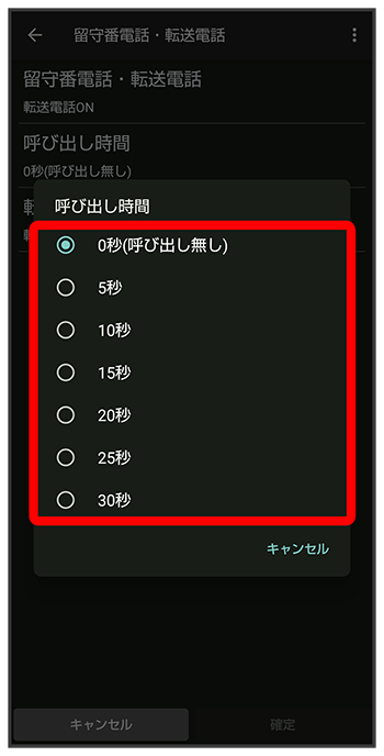 留守番電話・転送電話画面で