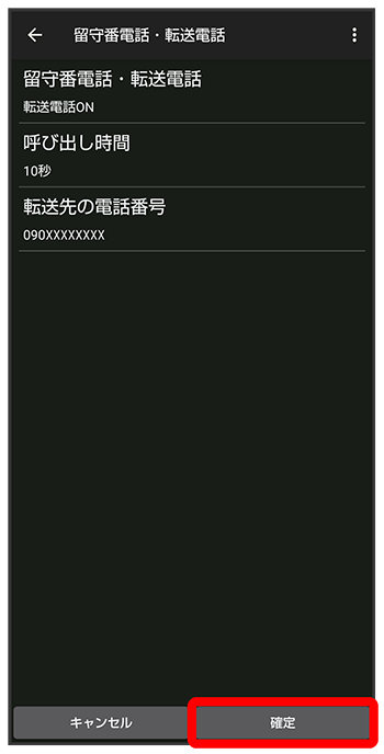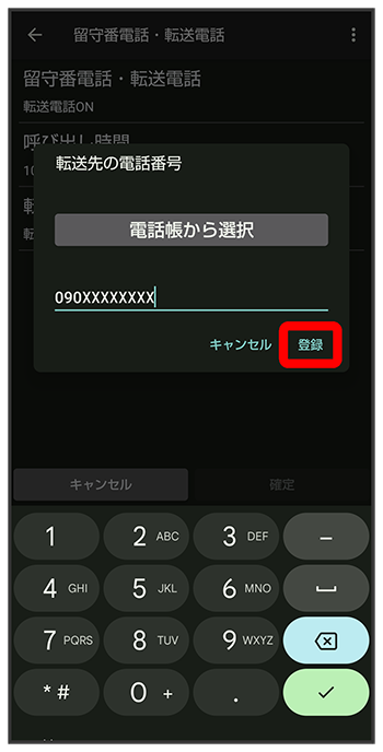 電話番号入力欄をタップ転送先の電話番号を入力