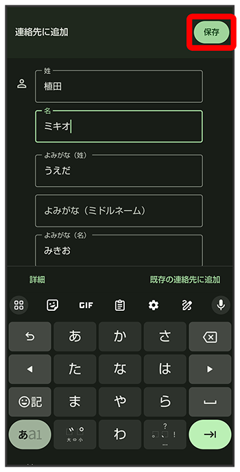 - 追加したい連絡先を入力表示された連絡先をタップと操作すると、既存の連絡先へ追加することができます。