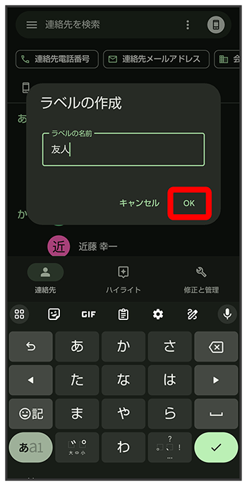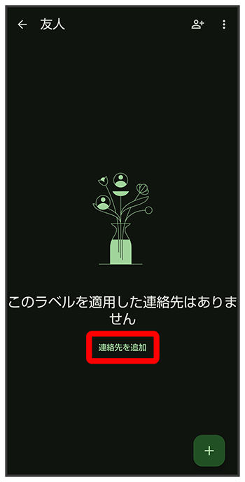 (電話)と操作して表示した連絡先画面では、ラベルの登録はできません。