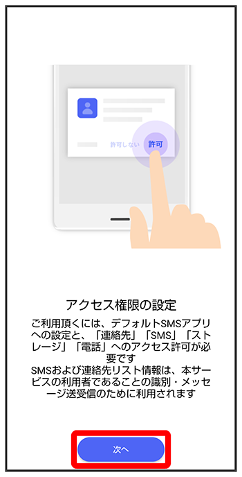 - アクセス権限の設定画面が表示された場合は、機能の利用を許可してください。機能の利用を許可しなかった場合は、+メッセージが正常に動作しないことがあります。