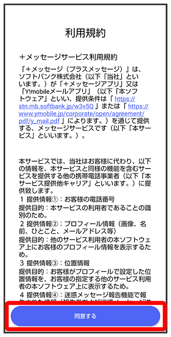 - ほかのメールアプリをデフォルトのSMSアプリとして設定している場合は、+メッセージをデフォルトのSMSアプリに設定する画面が表示されます。画面の指示に従って+メッセージをデフォルトのSMSアプリに設定してください。