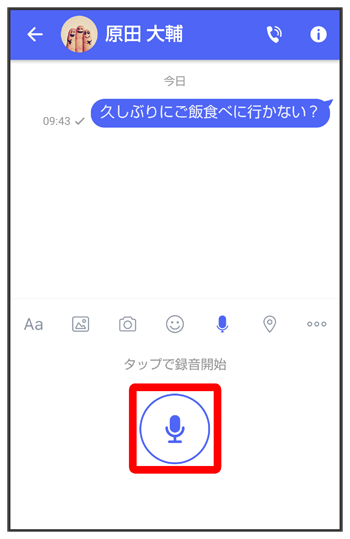 をタップすると音声メッセージが添付されたメッセージが送信されます。