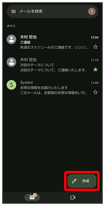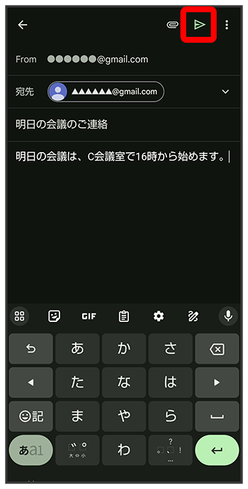 メール作成画面で- を選択すると、送信する日時を詳細に設定できます。