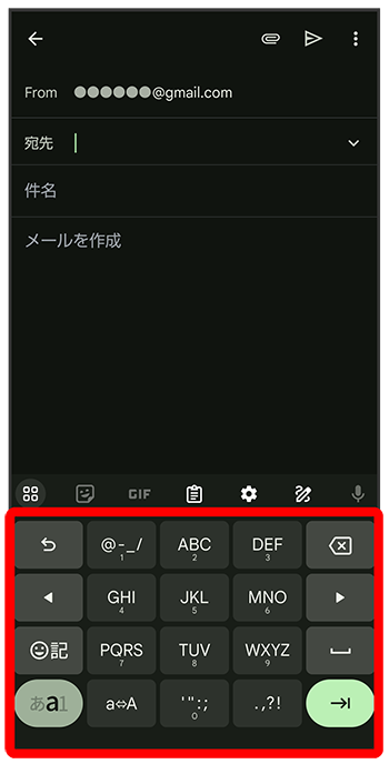 メール作成画面で- を選択すると、Google ドライブに保存したファイルを添付できます。
