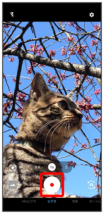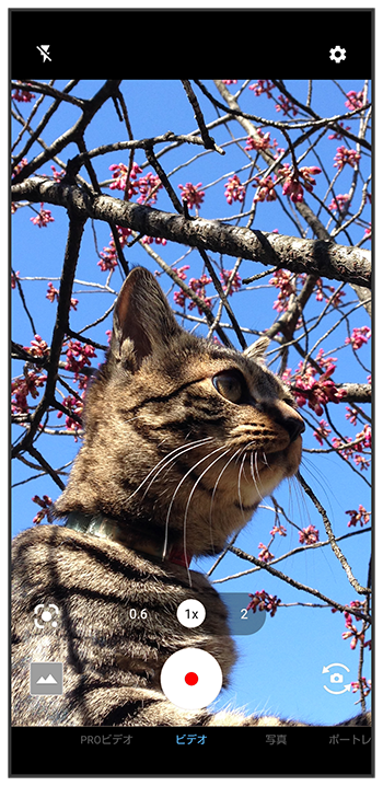 をタップすると写真が撮れます。また、が有効のときに動画を撮ると、笑顔、犬や猫の顔、よい構図などをAIが判断して、自動で写真を撮ります。 - 動画撮影中に