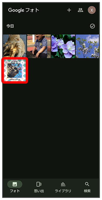 ショートムービー再生画面で画面をタップ//- 保存されていないパターンの動画を保存するときは、をタップします。