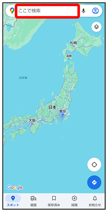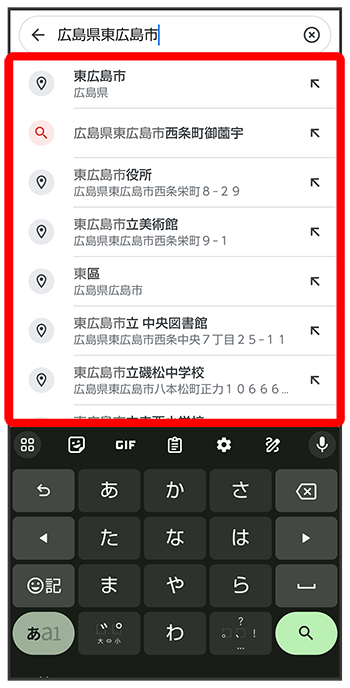 住所や都市、施設名などを入力選択候補から住所や都市、施設名などをタップ